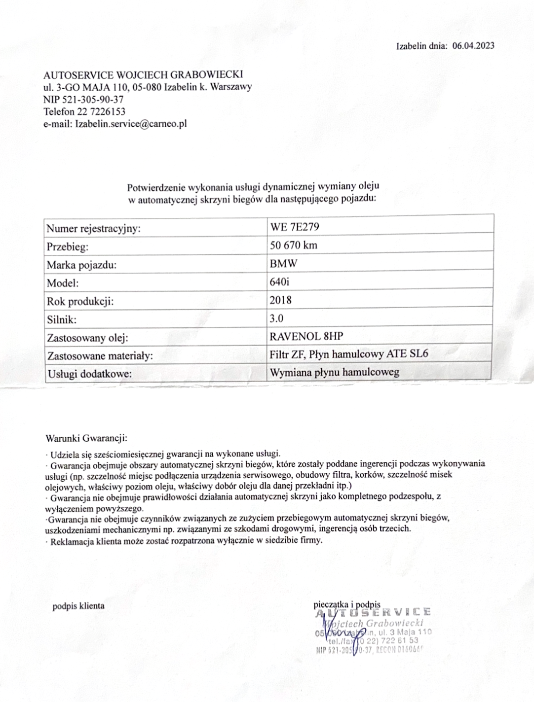 Olej w skrzyni dynamicznie Ravenol 8HP 13l + miskofiltr ZF + płyn hamulcowy Ate dynamicznie